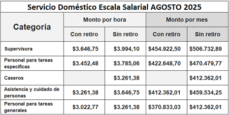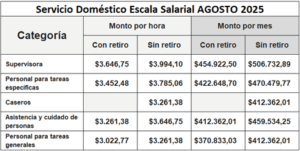 13 Ago Servicio Doméstico: Escala salarial Agosto 2025
